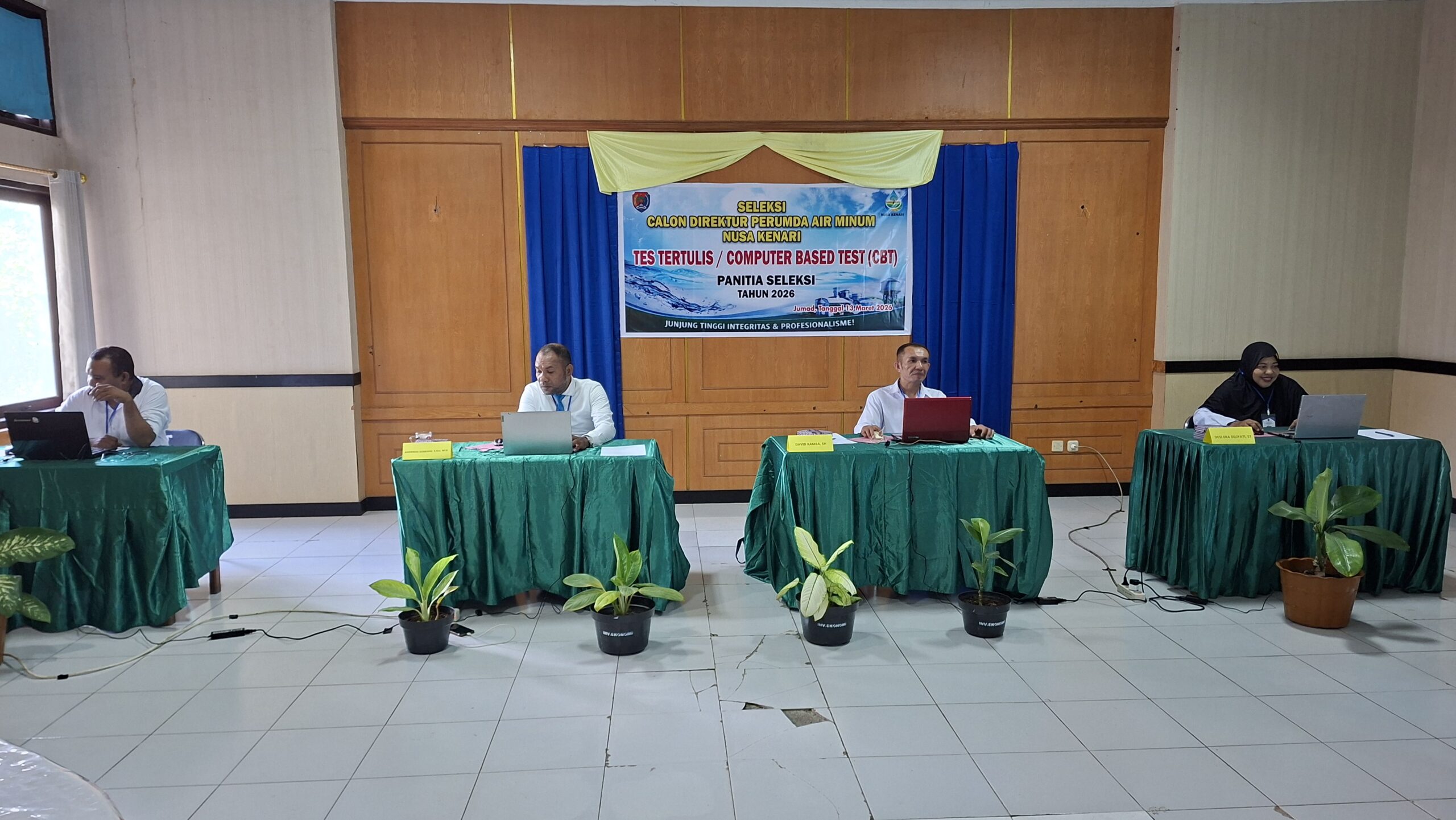 Disaksikan media ini di Kantor Bupati Alor, Jumat (13/03/2026) 4 (Empat) Calon Direktur PERUMDA Nusa Kenari Kabupaten Alor, antara lain Benjamin M.C Tubatonu, SE, Anderias Gomang, S.Sos, M.Si, David Kamba, SH dan Desi Eka Diliyati, ST serius mengikuti tes tertulis berbasis web dengan menggunakan aplikasi Computer Based Tes (CBT).
