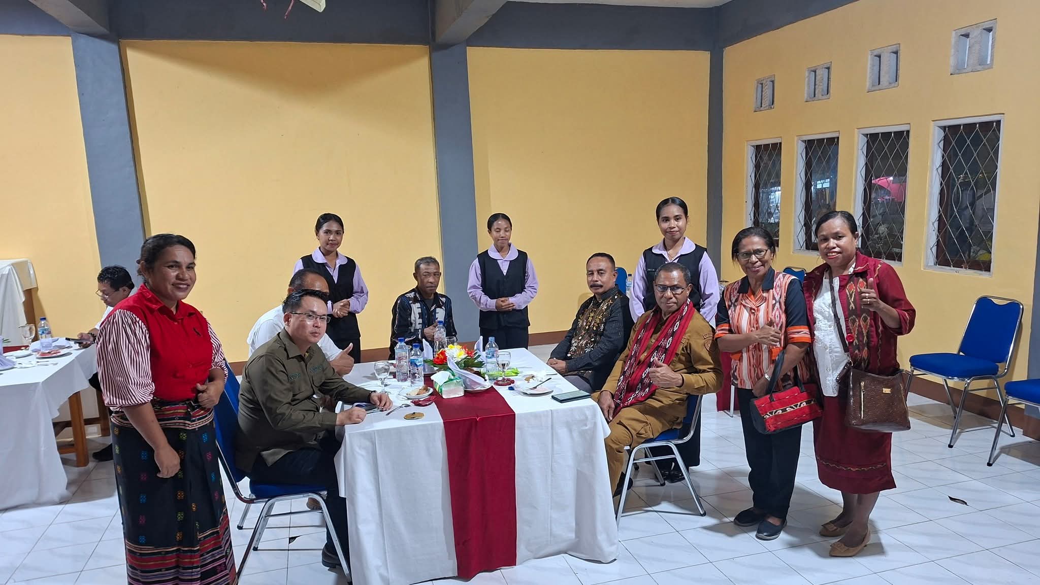 Wagub NTT, Wabup Alor dan sejumlah pejabat daerah dalam satu sesi foto bersama guru dan siswi SMKN 1 Kalabahai usai makan malam di SMA Katholik St. Joseph Kalabahi. FOTO:MW/RP