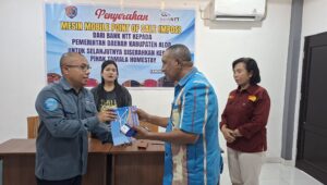 Kepala Cabang Bank NTT Kalabahi, Glanthyano S. R. Ndoen menyerahkan perangkat tersebut secara langsung kepada Pemerintah Kabupaten Alor yang diwakili Asisten 2 Sekda Alor, Anderias Blegur, SH, M.SI.